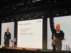 En fullsatt sal med runt 1 300 åhörare lyssnade på en föreläsning av professor emeritus Peter Strang, Karolinska institutet, som inledning på dag två av Äldreomsorgsdagarna på Älvsjömässan i Stockholm. Han berättade om vikten av god palliativ vård baserat på sin mångåriga forskning, på ett medryckande och berörande sätt.