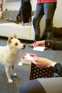 – Det roliga med aktiviteten är att det är hunden som väljer kort, förklarar Annelie Hultin.